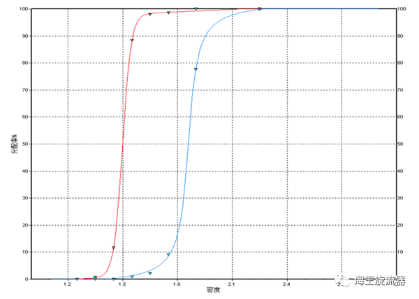 海王3CDC1100/780型號旋流器在山東某選煤廠應(yīng)用,原煤理論精煤產(chǎn)率60.389%,理論分選密度1.489kg/l,±0.1含量8.14%,入選原煤為易選煤。生產(chǎn)中實際處理能力約為380t/h,生產(chǎn)精煤灰分9.00%,數(shù)量效率98.55%,一段E值0.027kg/l,二段E值0.036kg/l。與同型號標準型三產(chǎn)品旋流器對比,處理量提高52%,原煤年產(chǎn)量提高68.64萬噸,經(jīng)濟效益顯著。